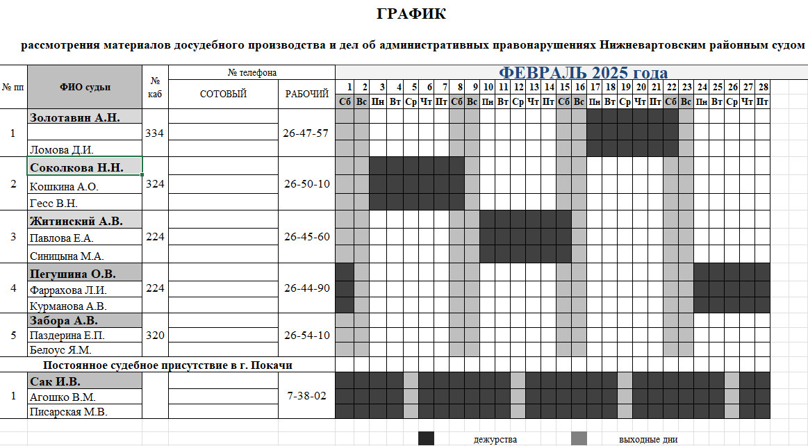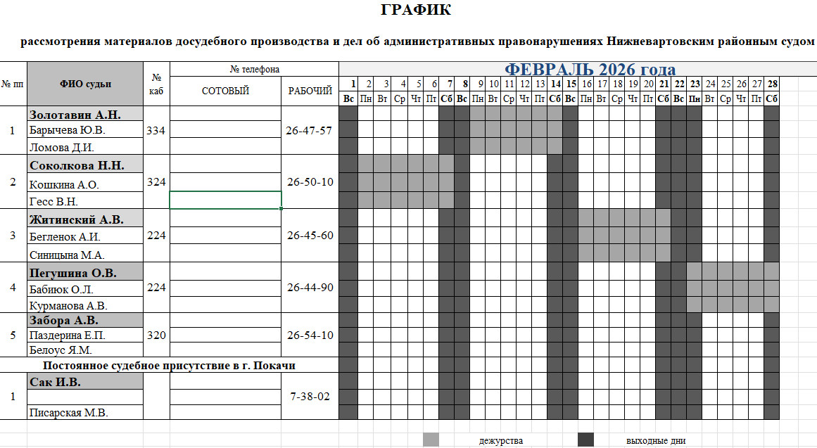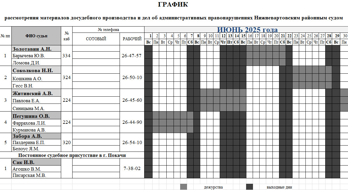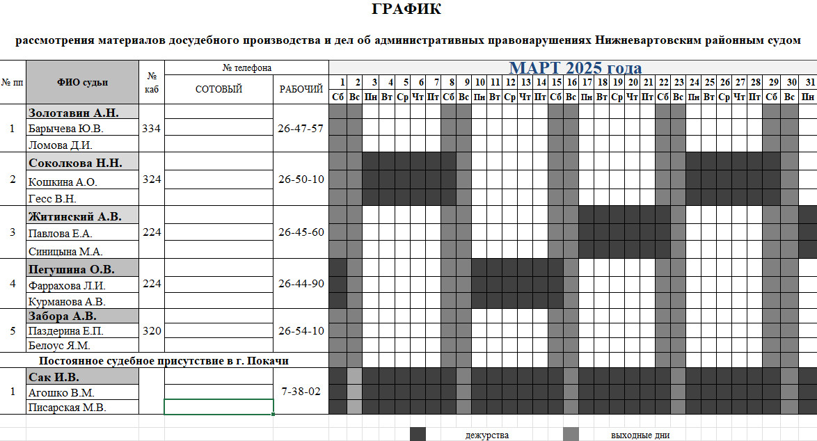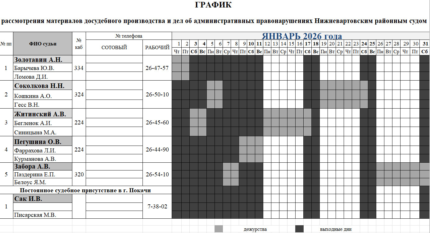 График дежурств судей