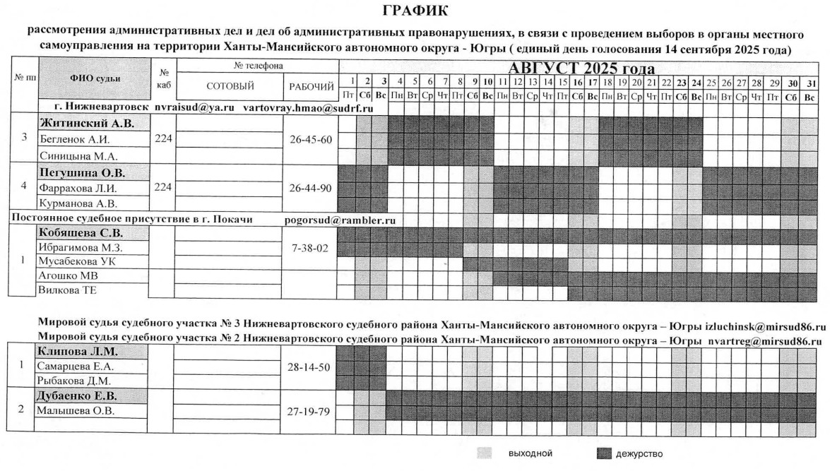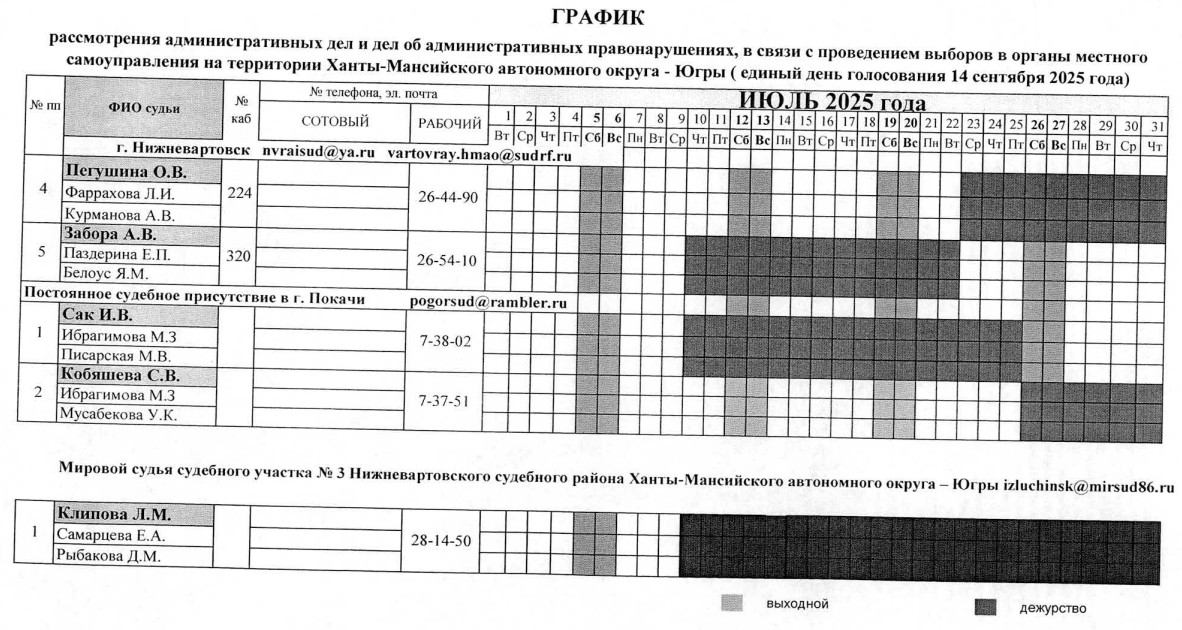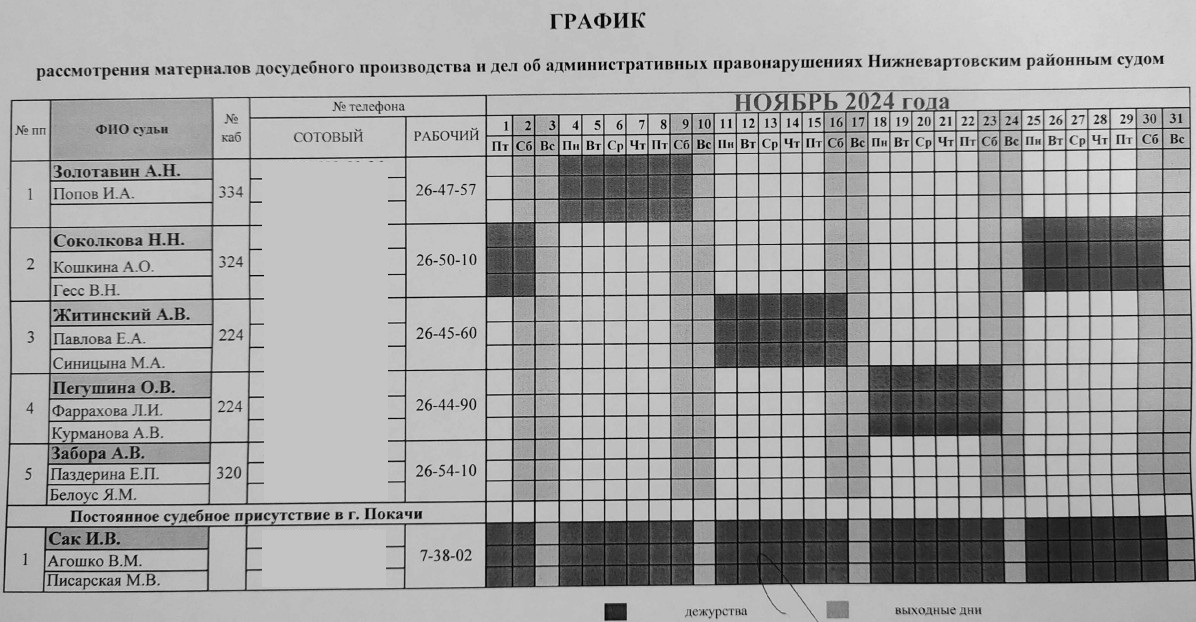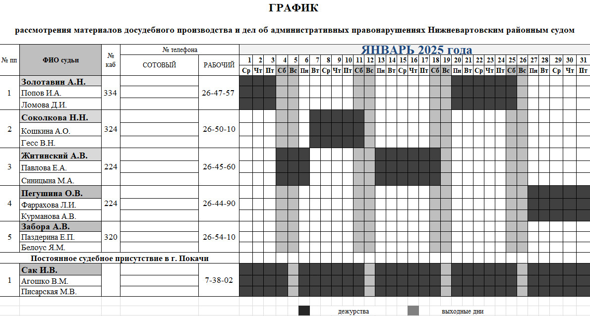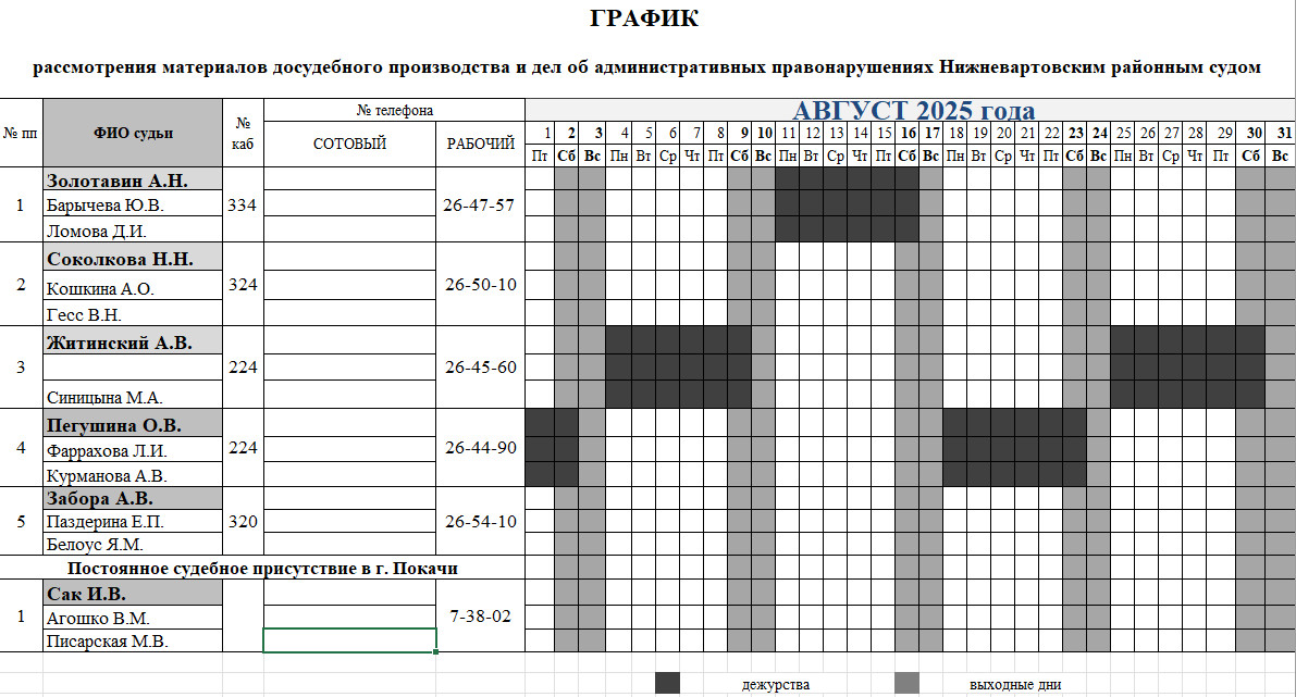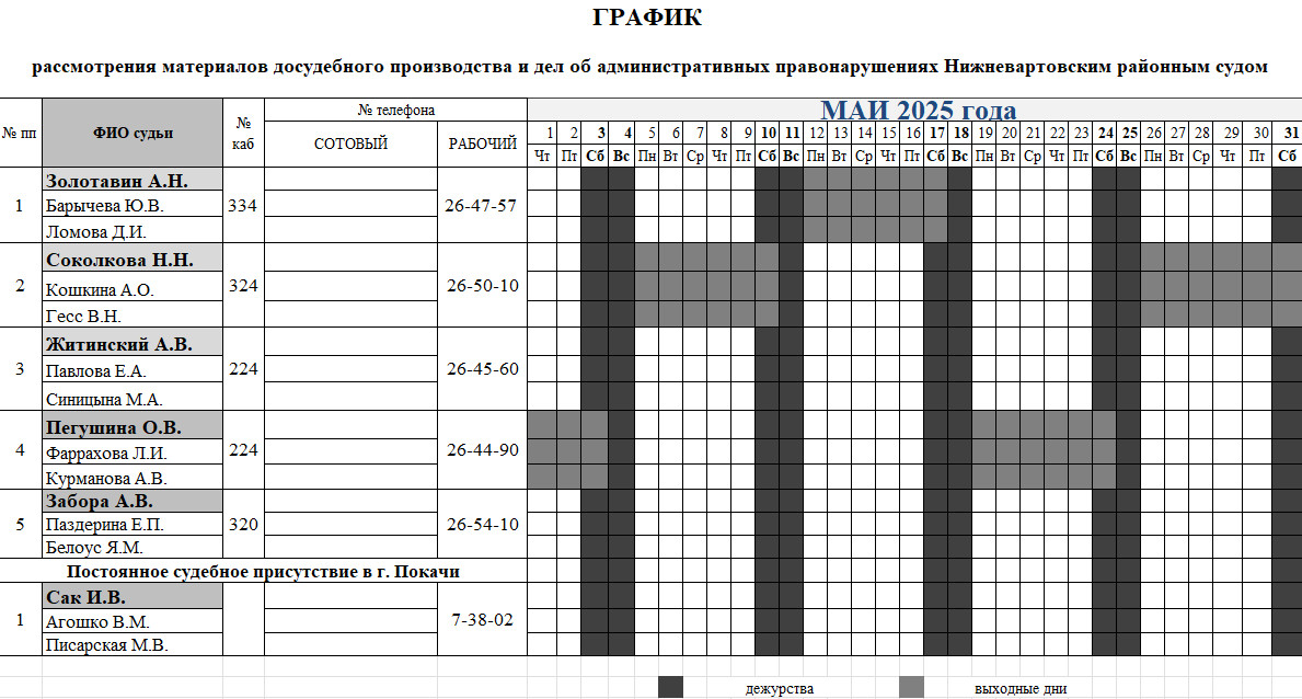 График дежурств судей